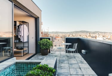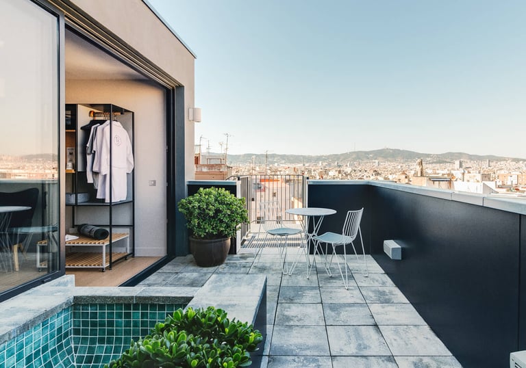 Relaxed modern design near Montjuïc, perfect for long summer days, late dinners, and beach-to-city wandering.