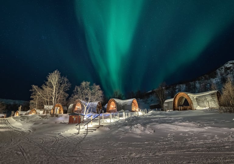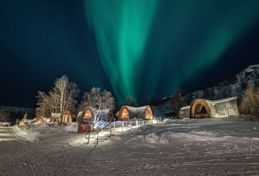 A true Arctic winter experience with snow-covered landscapes, husky trails, and polar-night skies as the main event.