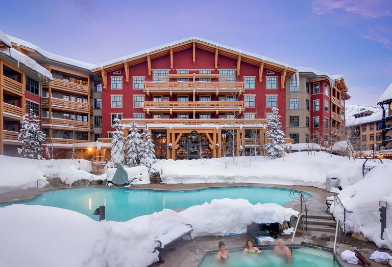 Ski-in village setting wrapped in deep snow, mountain light, and classic winter energy at elevation.
